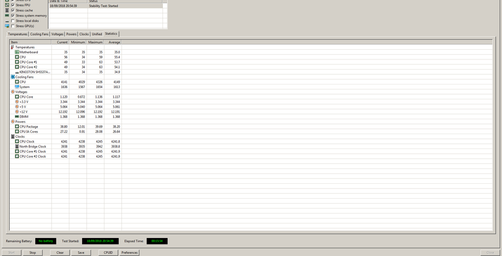 En las Pruebas de Rendimiento utilizamos un programa llamado AIDA64 el cual contiene un programa de Strees que utilizaremos para verificar si existen variaciones en los voltajes tanto en stock como en Overclocking y como podrán apreciar en las pruebas la Fuente soporto un Overclocking de 4.8GHZ de un Core i3 7350K, no hubieron casi variaciones con respecto a los voltajes 3v,5v y 12v manteniendose estable en las pruebas que se realizaron.