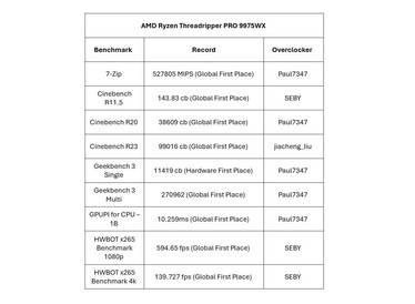 ASUS anunció hoy que el tablero de la estación de trabajo Pro WS WRX90-SAGE SE ha marcado 46 nuevos registros de rendimiento aprovechando los últimos procesadores AMD Ryzen Threadripper PRO, que van desde el PRO 9965WX hasta el PRO 9995WX. Esto establece un nuevo punto de referencia para el rendimiento de la clase de la estación de trabajo, estableciendo esta placa base como la plataforma definitiva para profesionales y sobreclockers que quieren empujar los límites de la potencia de la CPU. Estos resultados pioneros llegan gracias al trabajo de overclockers profesionales CENS, SEBY, bl4ckdot, Paul7347 y jiacheng-liu.