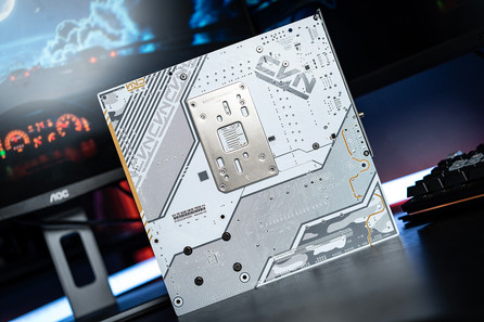La CVN B650M FROZEN Wi-Fi luce el característico diseño estilo camuflaje de inspiración militar en blanco sobre plata que se extiende hasta la parte trasera de la placa base. El logotipo CVN iluminado con LED RGB en la parte superior derecha de la placa base completa el aspecto gaming de la placa base, que puede sincronizarse con otros componentes RGB mediante la aplicación iGame Center.