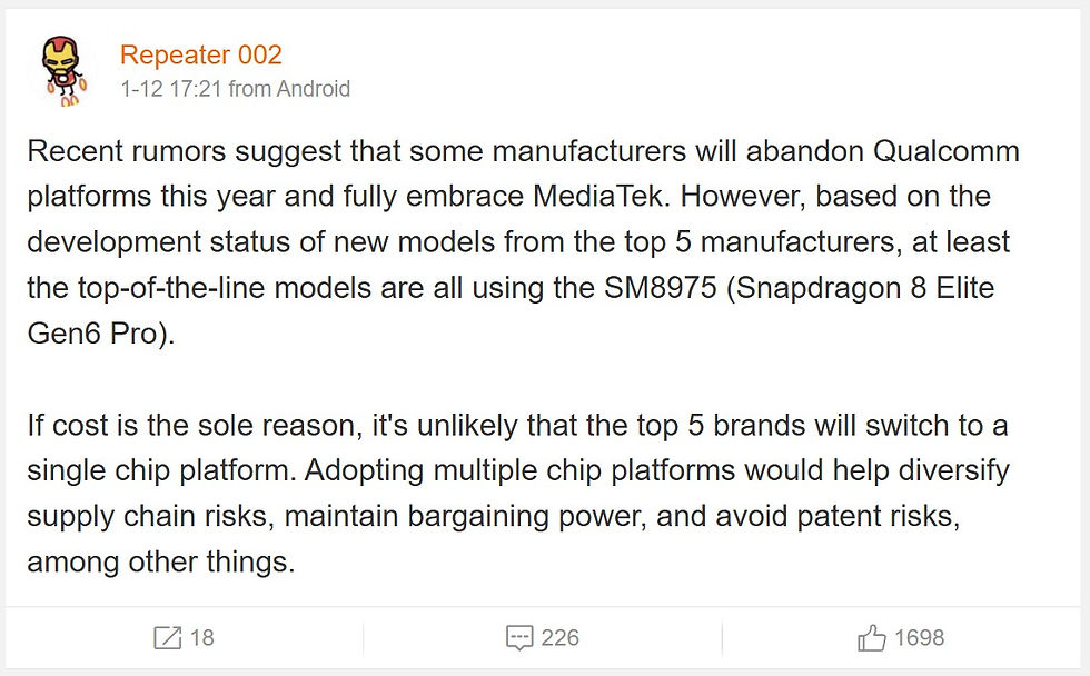 Se rumorea que algunos fabricantes de teléfonos inteligentes Android abandonarán por completo Qualcomm y se espera que cambien a Dimensity 9600 de MediaTek para reducir el gasto del conjunto de chips