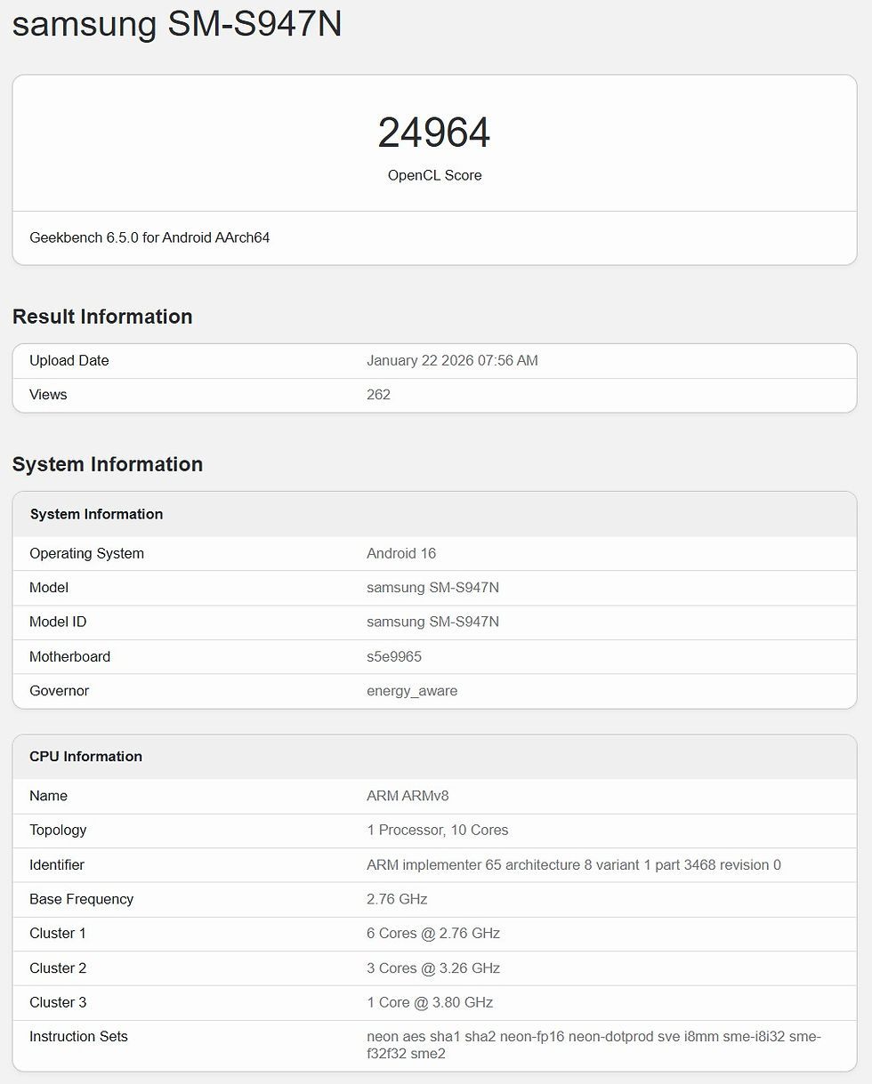 Samsung destacó una multitud de mejoras para el Xclipse 960 de Exynos 2600, donde la compañía declaró que el procesador gráfico ofrece hasta un 50 por ciento de rendimiento de trazado de rayos mejorado en comparación con el Xclipse 950 perteneciente al Exynos 2500. Si bien estas son ganancias impresionantes, tenemos algo aún más “jaw-droping” para mostrarte. El Galaxy S25+ con el número de modelo SM-S947N ha sido visto en Geekbench 6, con una designación única que indica que está destinado al mercado surcoreano.