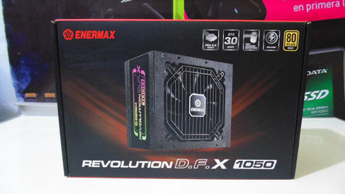 Enermax nos presenta la Revolution D.F.X la cual nos ofrece una potencia de 1050W con certificación Plus Gold, su empaque es bastante característico de la marca mostrándonos en la frontal el diseño de la PSU con su nombre completo y también algunos datos de interés como su certificación. Dicho modelo nos ofrece RGB lo que es un punto bastante positivo para los amantes del mismo.