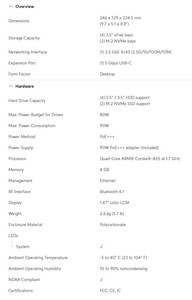 La UNAS 2 más pequeña está hecha para configuraciones menos exigentes que ofrecen dos bahías de tracción de 3,5 pulgadas en una caja de 135 x 129 x 223.7 mm. Aunque carece de funcionalidad de intercambio en caliente y soporte NVMe, conserva el mismo procesador, configuración de memoria y opciones de red que su hermano mayor. El consumo de energía cae a 60 W a través de la entrega de PoE.