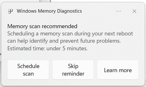 La tierra de Windows 11 finalmente está recibiendo una característica que la mayoría de los usuarios apreciarán, con la introducción de la nueva memoria de escaneo para problemas después de que ocurra una pantalla azul de muerte (BSOD). "Estamos introduciendo una nueva característica que ayuda a mejorar la fiabilidad del sistema. Si su PC experimenta una comprobación de errores (reinicio inesperado), es posible que vea una notificación al iniciar sesión sugiriendo un análisis de memoria rápido", señaló la líder del Programa Windows Insider, Amanda Langowski. Además, el "Si elige ejecutarlo, el sistema programará un análisis de diagnóstico de memoria de Windows para ejecutar durante el próximo reinicio (que tarda 5 minutos o menos en promedio) y luego continuará a Windows. Si se encuentra y se mitiga un problema de memoria, verá una notificación después del reinicio".